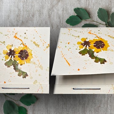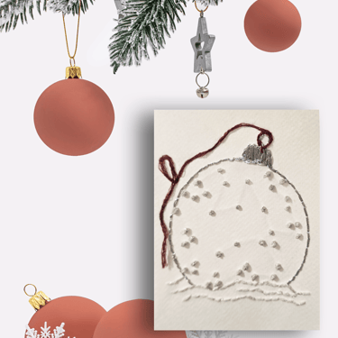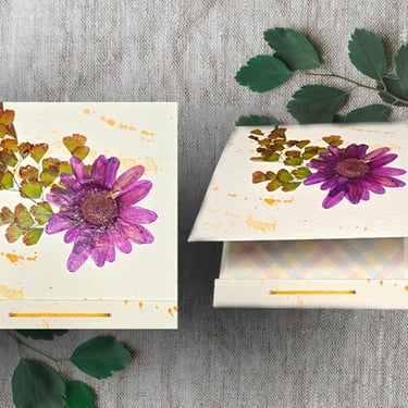 A curated collection of papeterie editions from the studio — mixed media works in watercolor, hand stitching, pressed florals with personalized motifs and holiday editions.